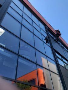 Intervention d’une de nos équipes de techniciens cordistes spécialisés en nettoyage / lavage de vitres sur cordes dans le Pas de Calais.